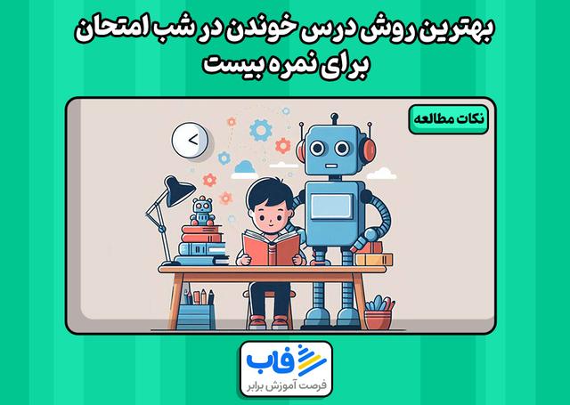 اگر در تنظیم ساعت خواب مشکل دارین و خواب ناکافی روی عملکرد تحصیلی شما تاثیر گذاشته، مقاله «تنظیم ساعات خواب دانشآموزان» توضیحات بیشتری در اختیار شما قرار میده تا در بدترین زمان مطالعه که آخر شبه، درس نخونین و به راحتی استراحت کنین.